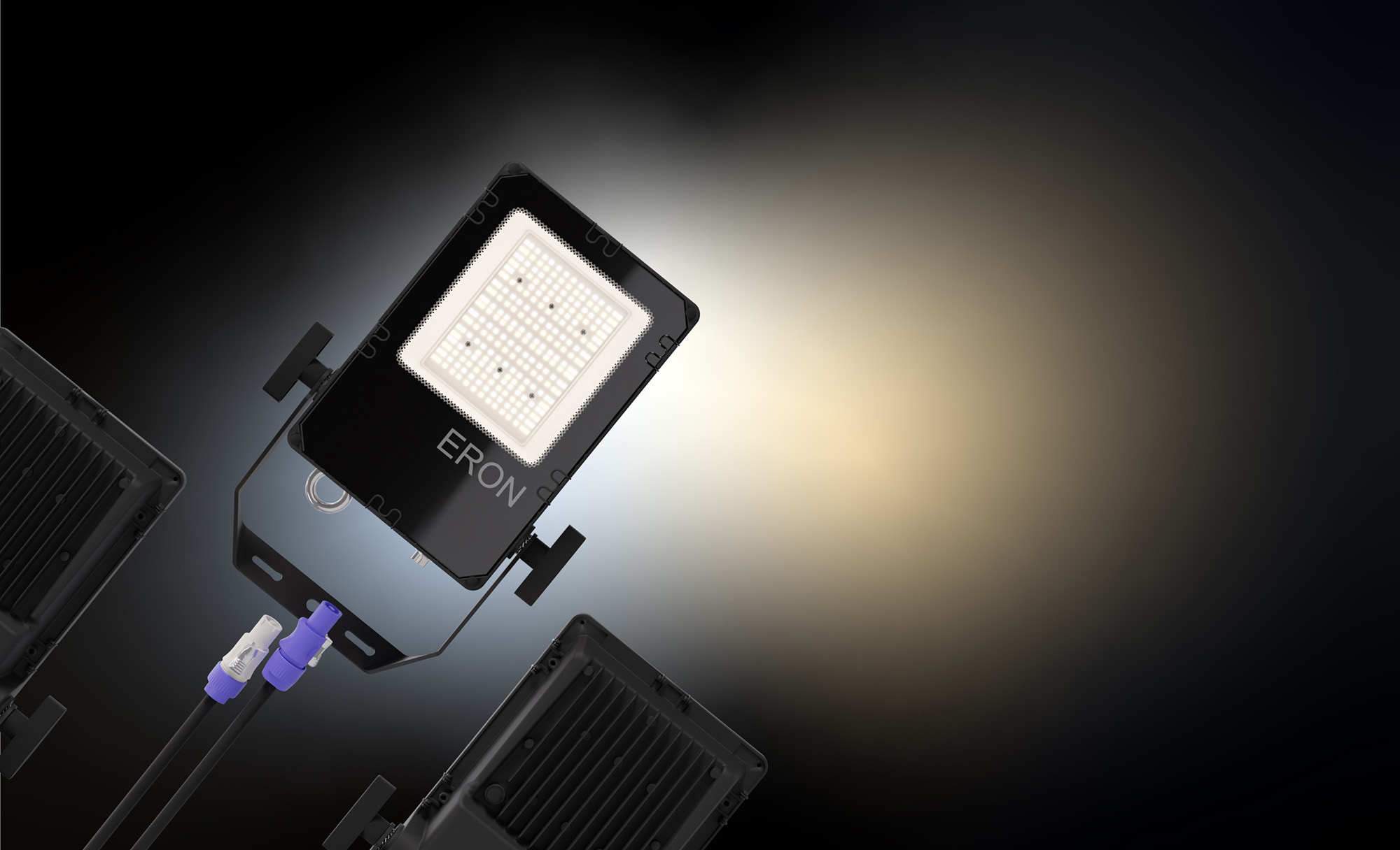 Verbinden Sie einfach mehrere Fluter über PowerCon In/Out-Anschlüsse.