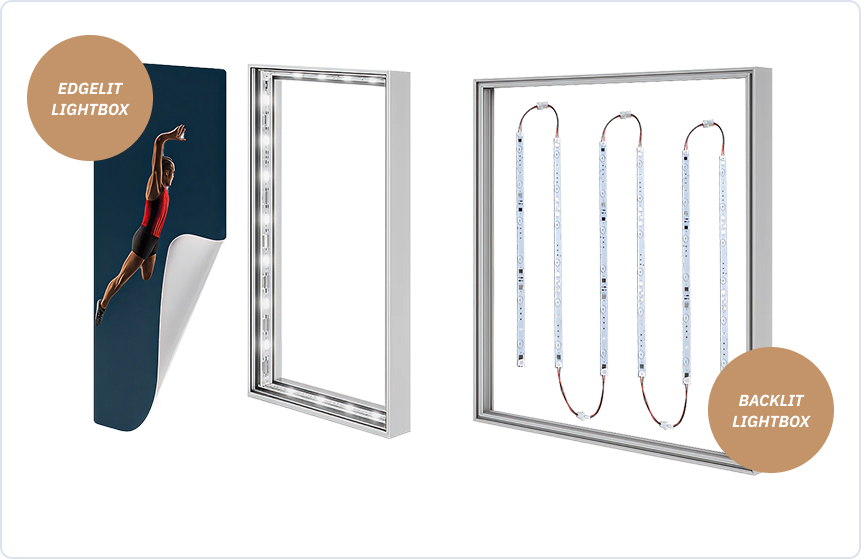 Je nach Rahmen und Anwendung wählen Sie zwischen einer Backlit- oder Edgelit-Variante – beide sorgen für eine kraftvolle und gleichmäßige Ausleuchtung.