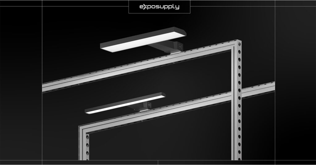 Mit den verschiedenen Montageclips sind unsere Langarmstrahler in jedem Standbausystem einsetzbar.