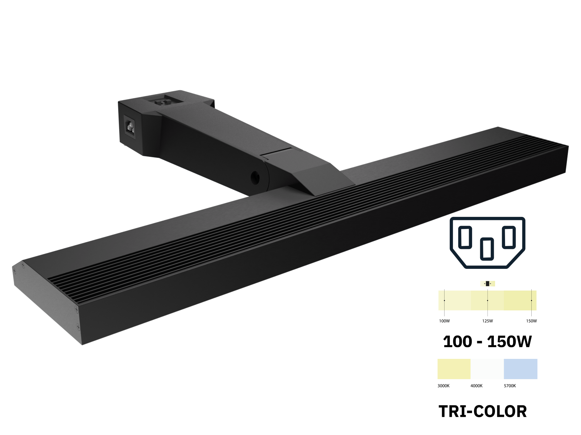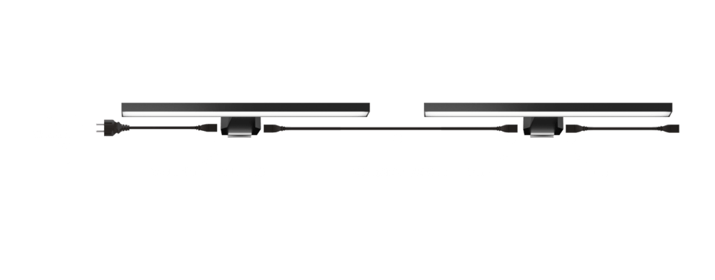 Schließen Sie den Langarmstrahler mit dem Stromkabel direkt an das Netz (100–240 V) an—kein separates Vorschaltgerät erforderlich. Mehrere Langarmstrahler lassen sich mit dem Verbindungskabel (150/200/300 cm) durchschleifen und über ein einziges Stromkabel versorgen.