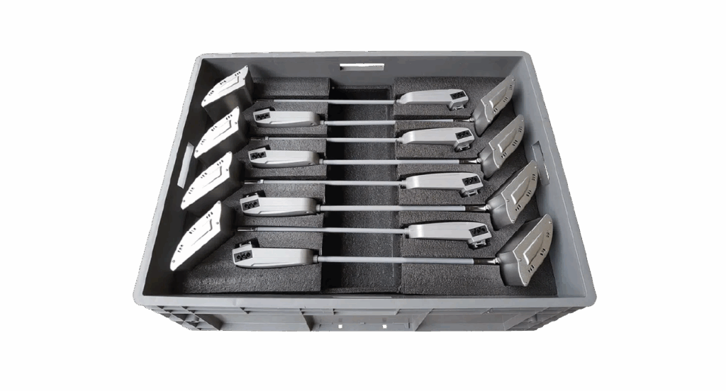 Robuste Transportbox für den sicheren, einfachen Transport mit passgenauer Schaumeinlage. Platz für 8 Langarmstrahler sowie Montageclips und Anschlusskabel.
