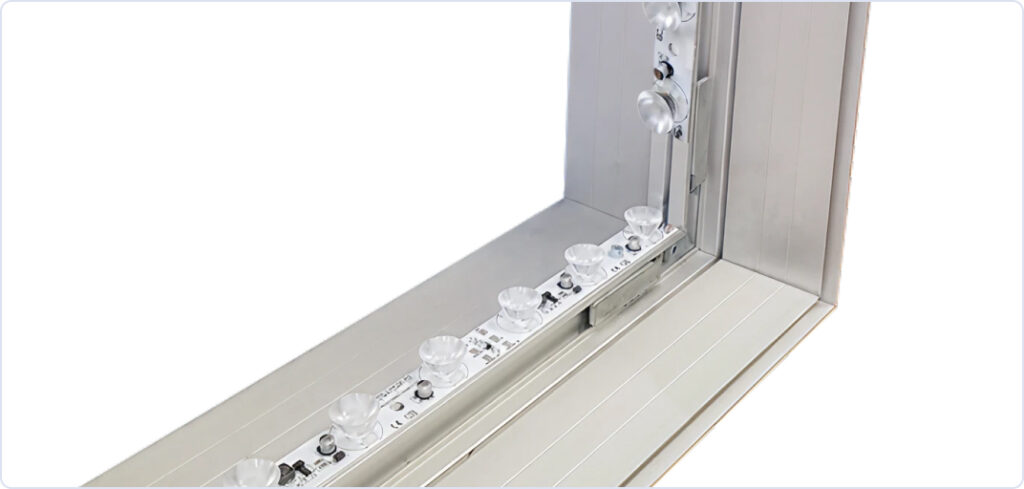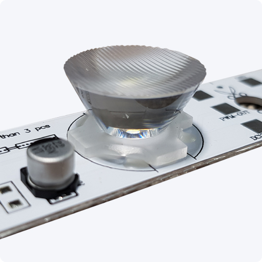 Die konische Form der LED-Linsen sorgt für eine gleichmäßige Lichtverteilung – ohne Schatten oder dunkle Ränder. Für ein sauberes, homogenes Lichtbild.