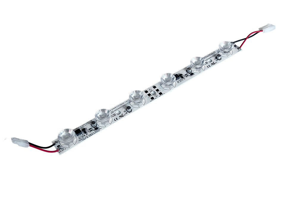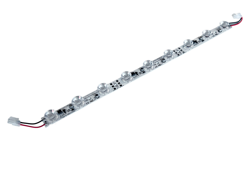 Das VICI ist ein Edgelit-Modul für Lightbox-Anwendungen. Mit einer Lichtleistung von bis zu 2700 Lumen sorgt dieses Modul für eine helle und gleichmäßige Ausleuchtung Ihrer Lightbox. Dank neun konischer 3-Watt-LEDs bietet das VICI eine beeindruckende Lichtintensität. Die konische Form der LEDs sorgt für eine gleichmäßige Ausleuchtung ohne Schattenbildung.