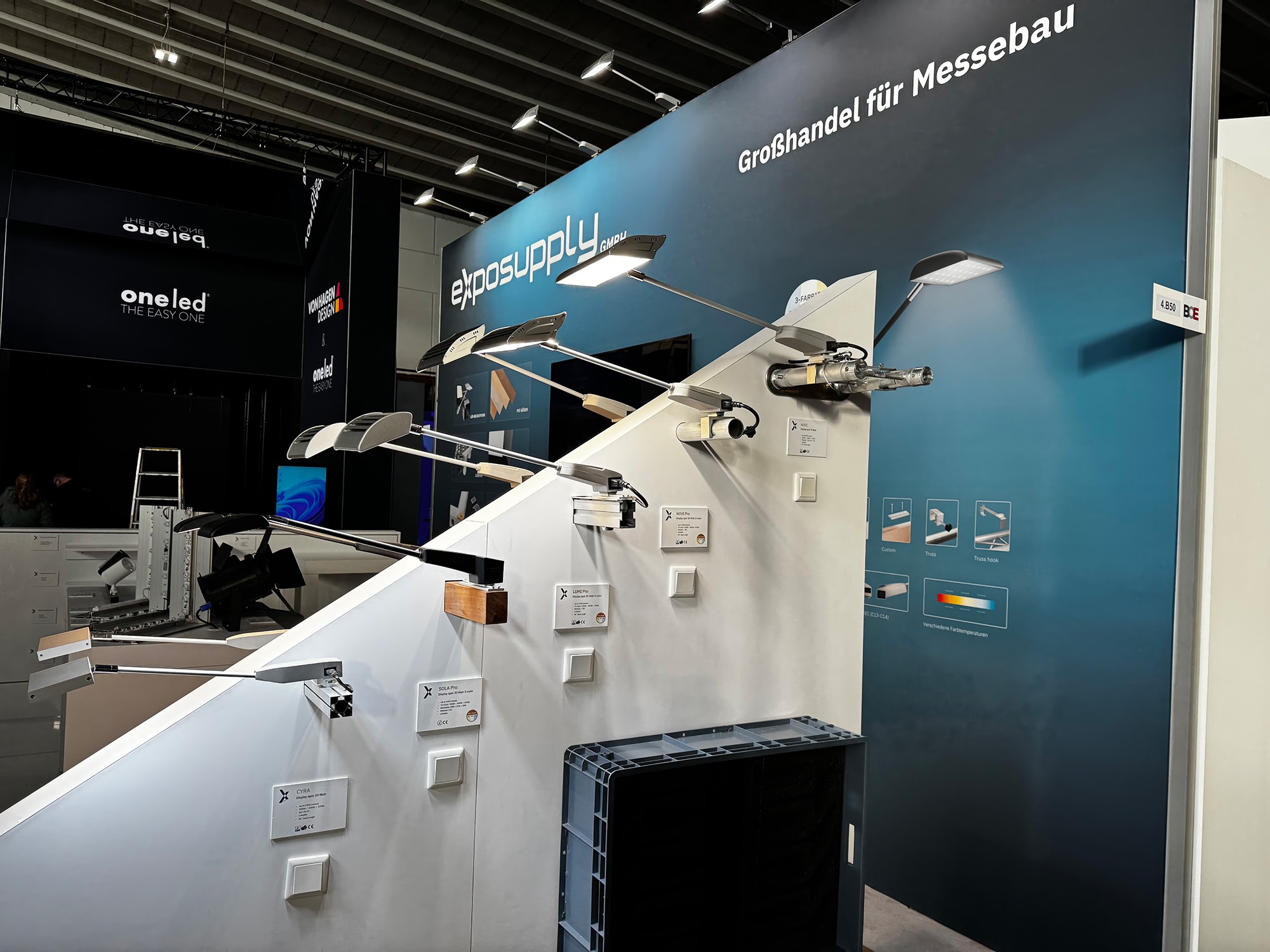 Dieses Wissen bildet die Grundlage von Exposupply. Wir übersetzen jahrelange Erfahrung in ein sorgfältig zusammengestelltes Produktsortiment für den Messe- und Eventbau. Entwicklung und Produktion erfolgen größtenteils in eigener Regie, sodass wir hohe Qualität mit wettbewerbsfähigen Preisen verbinden können — ohne Kompromisse.